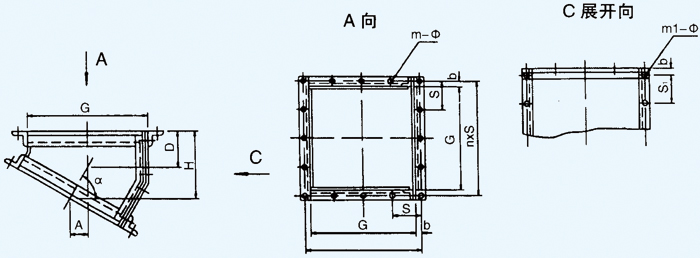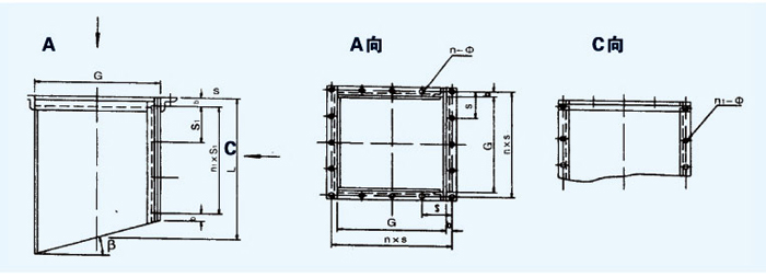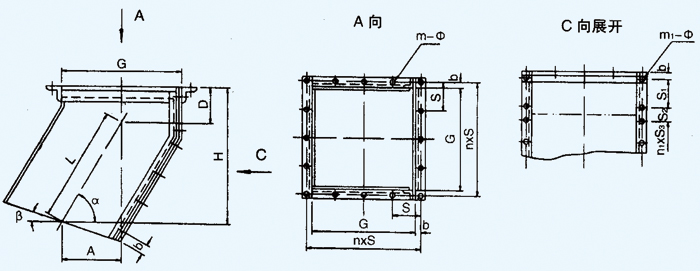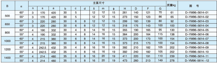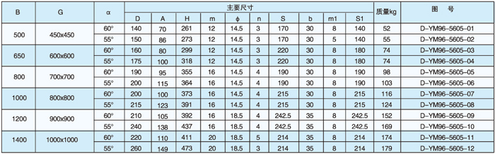 說(shuō)明:1、表中尺寸和質(zhì)量系按L=550毫米、β=18°編制;2、圖中已包括上部聯(lián)接用緊固件;3、管體采用耐磨材料整體鑄造。