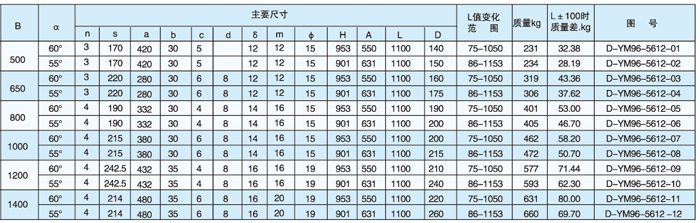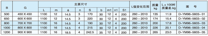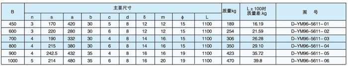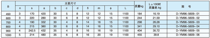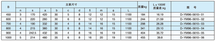 說(shuō)明:1、表中尺寸和質(zhì)量系按L=1100毫米編制;2、圖中已包括上部聯(lián)接用緊固件;3、管體采用耐磨材料整體鑄造。
